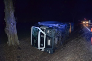 Pijany i z telefonem w ręku za kierownicą ciężarówki. Swoją jazdę zakończył w rowie