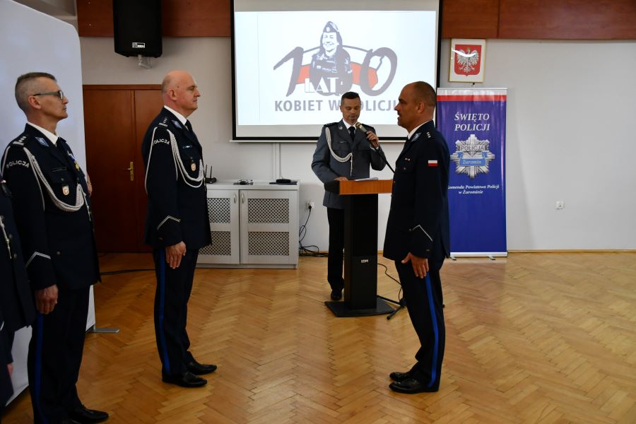 Dziś (25 lipca) w Urzędzie Gminy i Miasta Żuromin odbyły się uroczyste obchody Święta /Policji. Tegoroczne wydarzenie miało szczególny, podniosły charakter – świętowano nie tylko doroczne święto formacji, lecz także setną rocznicę obecności kobiet w szeregach polskiej Policji. Uroczystą zbiórkę, zgodnie z policyjnym ceremoniałem, rozpoczął od złożenia meldunku Zastępcy Komendanta Wojewódzkiego Policji z siedzibą w Radomiu, inspektorowi Pawłowi Herbusiowi, po którym odegrany został hymn Rzeczypospolitej Polskiej, który wzbudził refleksję i podkreślił rangę wydarzenia.