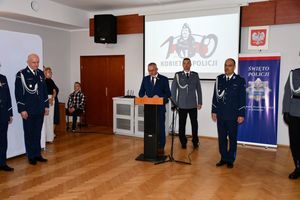 Jako pierwszy głos zabrał inspektor Marek Filipiak - Komendant Powiatowy Policji w Żurominie. W swoim przemówieniu nawiązał do setnej rocznicy kobiet w polskiej Policji. Podkreślał, że dziś kobiety odgrywają niezwykle ważną rolę w Policji, łącząc profesjonalizm, empatię i zdecydowanie w działaniu. Komendant złożył serdeczne życzenia wszystkim policjantom i pracownikom cywilnym oraz podziękował przedstawicielom samorządów, organom sprawiedliwości, zaprzyjaźnionym służbom mundurowym, instytucjom samorządowym i pozapolicyjnym za wspólne działania i wzajemne zaufanie, dzięki którym skuteczniej możemy dbać o bezpieczeństwo i porządek publiczny.