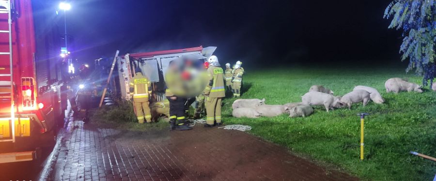 W pojeździe przewożonych było 170 sztuk świń. Niestety, część przewożonej trzody chlewnej nie przeżyła zdarzenia. Na miejscu przez ponad 5 godzin pracowały służby ratunkowe oraz powiatowy lekarz weterynarii, który nadzorował działania związane z zabezpieczeniem zwierząt.