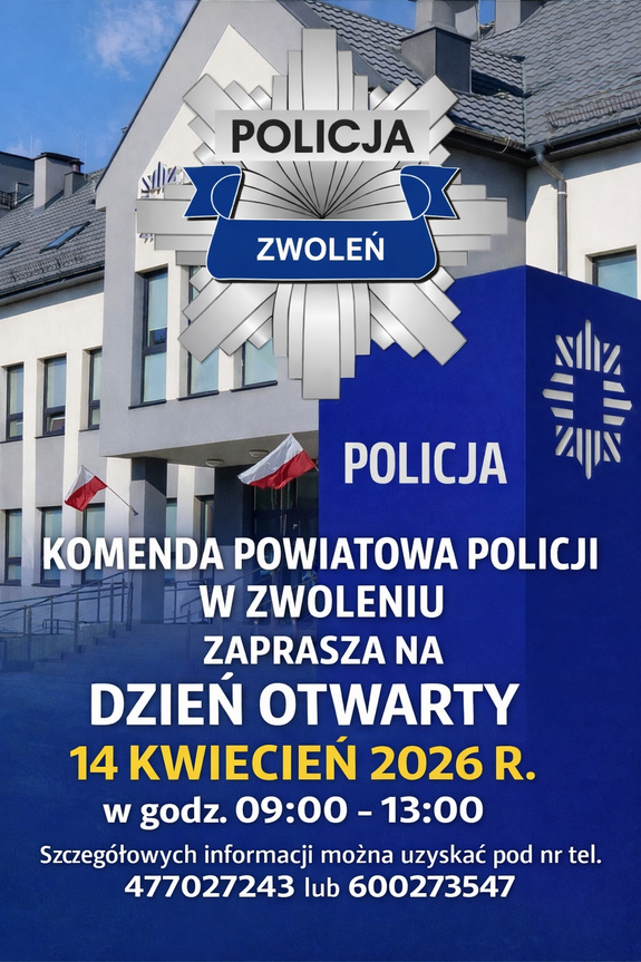 Chcesz poznać policyjną służbę? zapraszamy 14 kwietnia 2026 roku w godzinach 09:00-13:00 wszystkich zainteresowanych służbą w Policji na dzień otwarty Komendy Powiatowej Policji w Zwoleniu. Przekonaj się, że bycie policjantem to nie tylko zawód – to przede wszystkim służba społeczeństwu.