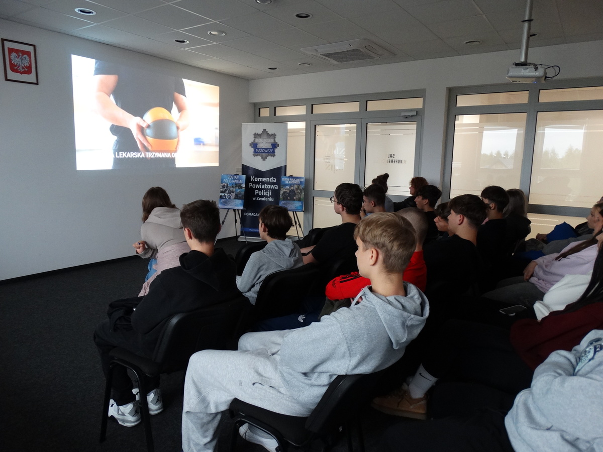 Na uczestników czekało wiele atrakcji. Policjanci z Komendy Powiatowej w Zwoleniu przedstawili informacje dotyczące procesu rekrutacji do Policji – wymagań formalnych oraz etapów naboru. Poruszane były również kwestie finansów oraz możliwości rozwoju zawodowego. Funkcjonariusze podkreślali, że służba w Policji to nie tylko odpowiedzialność i wyzwania, ale również satysfakcja płynąca z pomagania innym i dbania o bezpieczeństwo społeczeństwa.