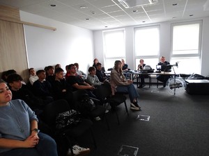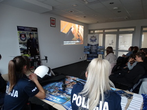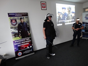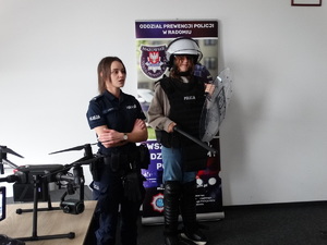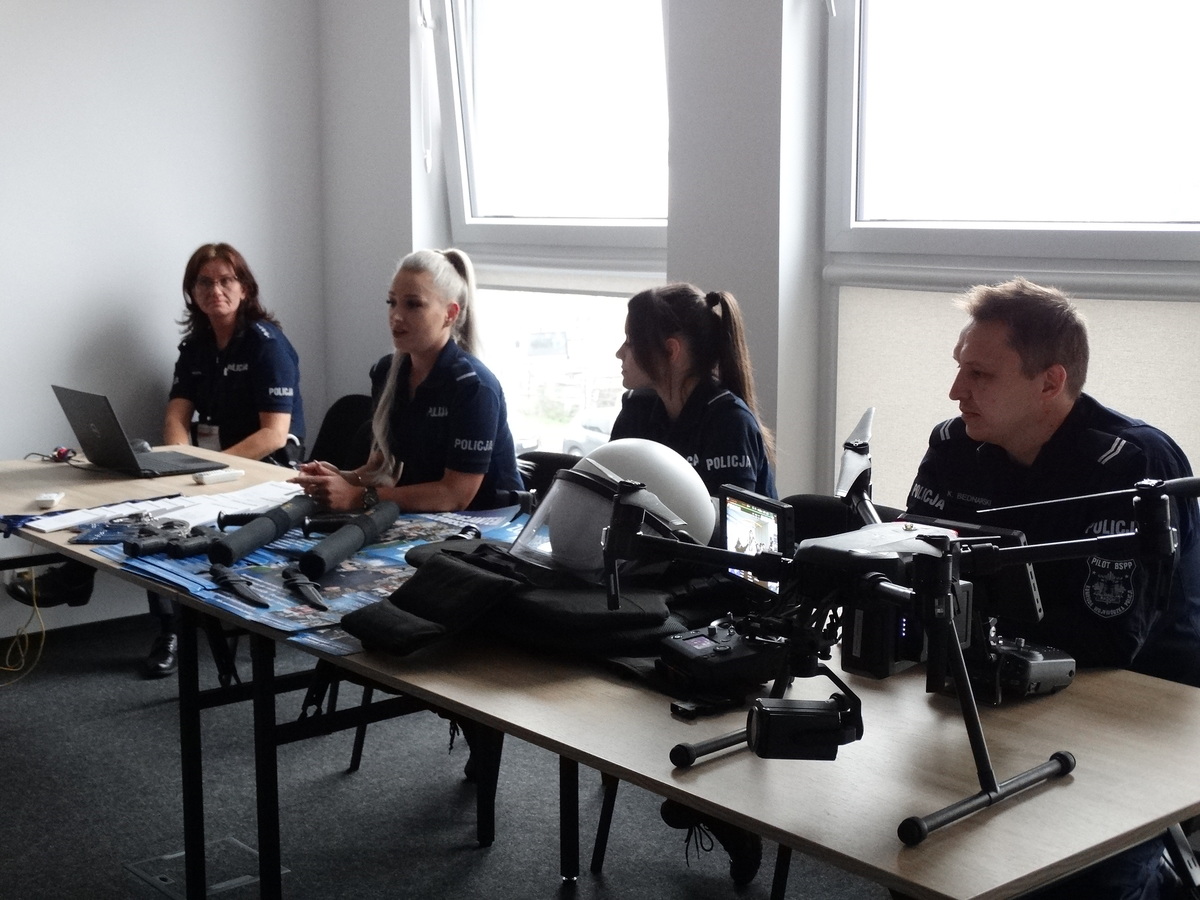Szczególne zainteresowanie wzbudzili zaproszeni funkcjonariusze z Oddziałów Prewencji Policji w Radomiu. Są to młodzi policjanci, dla których służba w Policji jest początkiem kariery. Funkcjonariusze opowiedzieli jak przebiega kurs podstawowy podczas, którego każdy nowo przyjęty funkcjonariusz zdobywa wiedzę teoretyczną i praktyczną. Policjanci chętnie opowiadali również o wykonywanej codziennej służbie. Jakie wyzwania stawia zawód policjanta ale także o satysfakcji płynącej z pomagania innym i zapewnienia bezpieczeństwa. Zaprezentowali sprzęt, którym posługują się na co dzień podczas pełnienia m.in. pokazały sprzęt przeciwuderzeniowy wykorzystywany przy zabezpieczeniu np. meczów piłki nożnej.