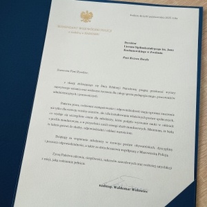 Insp. Jacek Różański na ręce Pani Bożeny Baryły Dyrektor Liceum Ogólnokształcącego wręczył list gratulacyjny kierowany od nadinsp. Waldemara Wołowca Komendanta Wojewódzkiego Policji z siedzibą w Radomiu okazji Dnia Edukacji Narodowej. Dziękując za zaangażowanie i odpowiedzialność nie tylko dla rozwoju wiedzy uczniów , ale i dla kształtowania właściwości postaw społecznych.