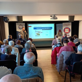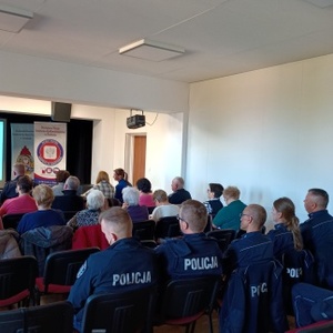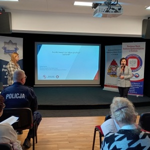 Następnie głos zabrała asp. Katarzyna Słyk, która omówiła aktualny stan bezpieczeństwa. Przedstawiła i wyjaśniła jak działają internetowi oszuści, podając konkretne przykłady. Radziła by weryfikować przychodzące połączenia i chronić swoje oszczędności. Szczególną uwagę zwróciła na bankowość elektroniczną. Policjantka zaprezentowała również narzędzia teleinformatyczne, takie jak Krajowa Mapa Zagrożeń Bezpieczeństwa oraz aplikacja Moja Komenda, które wspierają bezpieczeństwo mieszkańców oraz ułatwiają kontakt, m.in. z dzielnicowymi.