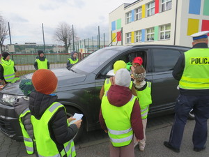 W akcji wspólnie z uczniami udział wzięli podinsp. Jakub Skiba Naczelnik Wydziału Ruchu Drogowego KPP w Zwoleniu, sierż. szt. Hubert Miturski z Wydziału Ruchu Drogowego KPP w Zwoleniu oraz Pani Agata Dmuchowska.