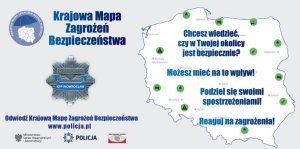 Krajowa mapa Zagrożeń Bezpieczeństwa to narzędzie internetowe umożliwiające mieszkańcom zgłaszanie miejsc i sytuacji, które mogą stanowić zagrożenie dla bezpieczeństwa., takich jak m.in. przekraczanie dozwolonej prędkości, nieprawidłowe parkowanie, spożywanie alkoholu w miejscu niedozwolonym. Korzystanie z Mapy jest bardzo proste. Zagrożenie można nanieść z dowolnego urządzenia posiadającego dostęp do Internetu. Co ważne, aby to zrobić nie ma potrzeby zakładania żadnego konta, podawania swoich danych, czy numeru telefonu. Każde zgłoszenie jest sprawdzane przez policjantów.