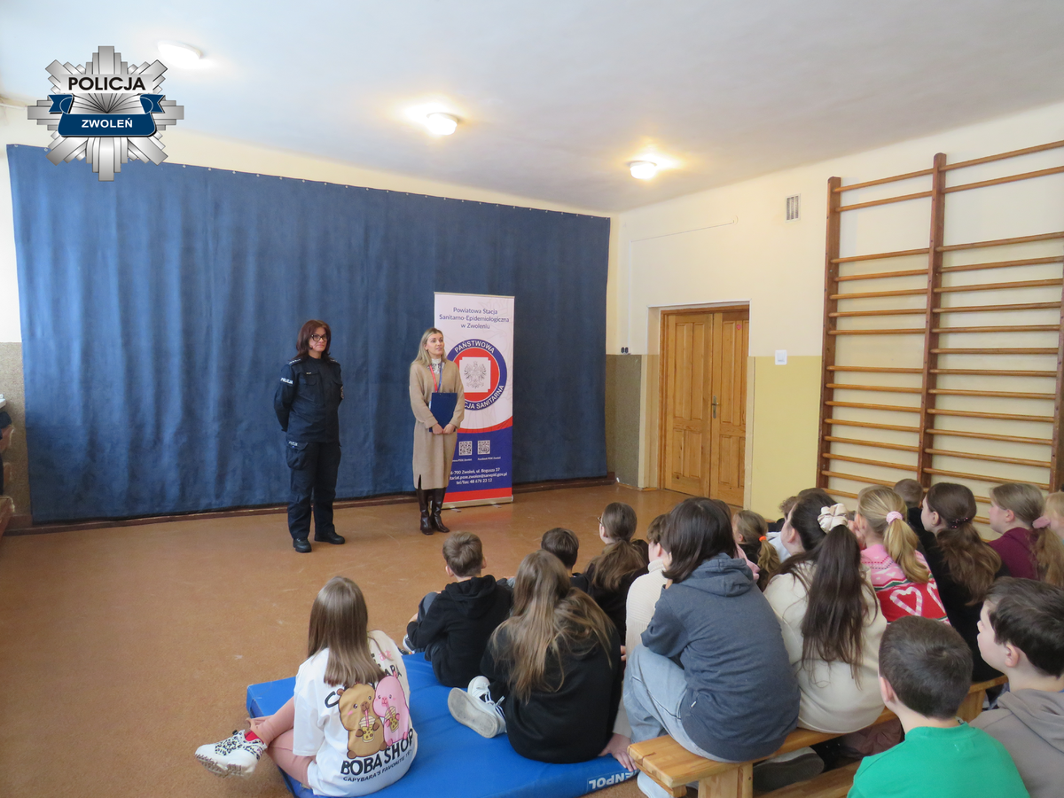 Zwoleńska profilaktyk wraz z przedstawicielem sanepidu rozpoczęły cykl prelekcji dotyczących bezpiecznego spędzania ferii zimowych na terenie powiatu zwoleńskiego. Dzisiaj (12.01) spotkały się z dziećmi i młodzieżą w szkołach podstawowych w Strykowicach Górnych i Paciorkowej Woli.