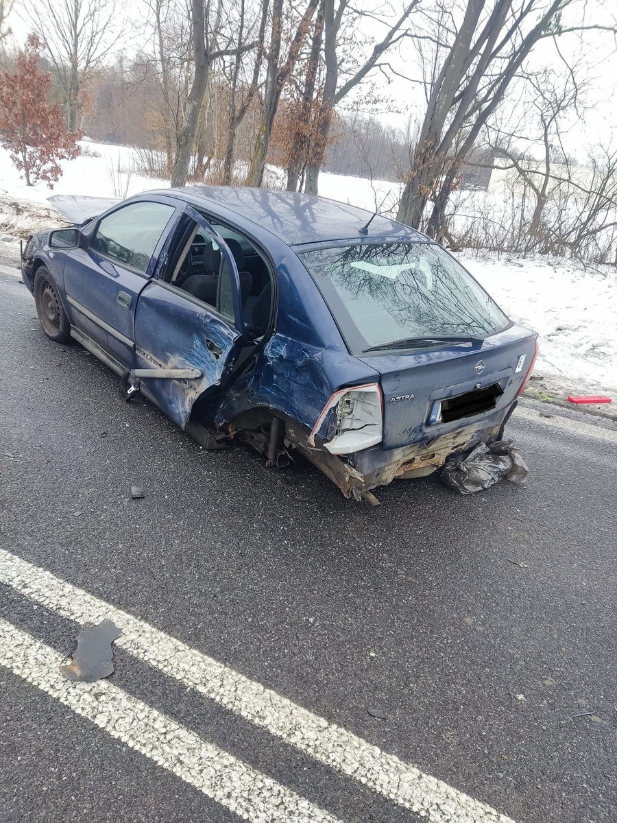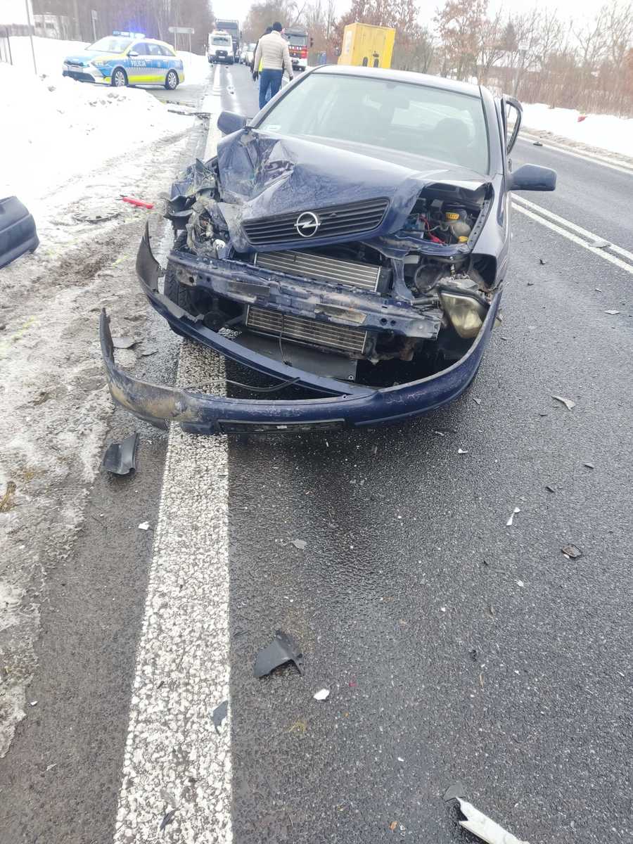 Jak ustali pracujący na miejscu policjanci 51-letni mieszkaniec gm. Zwoleń, kierujący mercedesem zasygnalizował zamiar skrętu w lewo, a następnie oczekiwał na jezdni chcąc ustąpić pierwszeństwa przejazdu nadjeżdżającemu z na przeciwka pojazdowi. W tym momencie jadący za nim 43-letni mieszkaniec gm. Policzna -kierujący oplem astra nie dostosował prędkości do warunków w wyniku czego nie wyhamował na śliskiej nawierzchni i uderzył w tylny lewy róg mercedesa. Następnie opel wypadł na przeciwległy pas i doprowadził do zderzenia z oplem meriva, kierowanym przez 20-letniego mieszkańca Warszawy, który po zderzeniu wpadł do przydrożnego rowu. W wyniku zdarzenia do szpitala został zabrany 43-latek. Wszyscy kierujący byli trzeźwi.