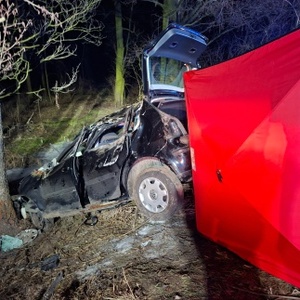 Policjanci pracowali na miejscu wypadku drogowego, do którego doszło w Chechłach. Śmierć na miejscu poniósł jeden z podróżujących Volkswagenem, a dwie osoby zostały ranne. Teraz policjanci pod nadzorem prokuratora wyjaśniają okoliczności, dokładny przebieg zdarzenia, w tym kto kierował pojazdem.