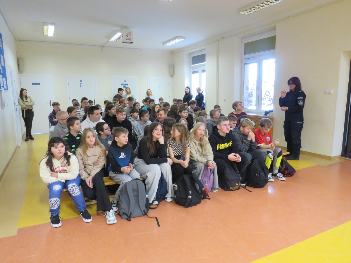 Uświadomiła młodych ludzi, że sieć to miejsce, gdzie złudne poczucie anonimowości użytkowników generuje różnego rodzaju przestępczość oraz inne negatywne zachowania. Przez brak czujności, niewiedzę lub nieuwagę w jednej chwili można stać się w ofiarą przestępstwa albo jego sprawcą. Policjantka zaznaczyła jak ważne jest odpowiednie korzystanie z mediów, aby nie stały się one narzędziem agresji i przemocy rówieśniczej oraz jakie konsekwencje prawne mogą spotkać nieletnich za czyny popełnione za pomocą narzędzi telekomunikacyjnych.