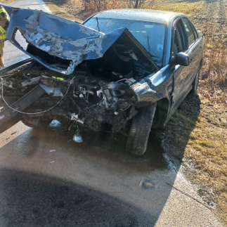 Na miejscu funkcjonariusze zastali 52-letniego kierującego samochodem marki Volvo, który prawdopodobnie nie dostosował prędkości do panujących warunków na drodze stracił panowanie nad pojazdem, wpadł w poślizg i uderzył w przydrożne drzewo. Kierujący został przewieziony do szpitala. Badanie wykazało, że był trzeźwy.