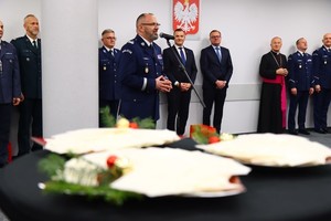 W czwartek, 18 grudnia, w sali konferencyjnej mazowieckiej komendy odbyło się uroczyste spotkanie wigilijne, podczas którego zaproszeni goście, przedstawiciele służb mundurowych, mazowieccy policjanci oraz pracownicy komendy przekazali sobie życzenia z okazji zbliżających się Świąt Bożego Narodzenia i Nowego 2026 Roku.