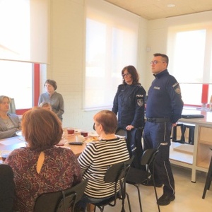 Zwoleńska profilaktyk st.asp. Katarzyna Cieślik oraz dzielnicowy Gminy Policzna asp. Konrad Karasiński w Centrum Integracji Społecznej w Policznie przeprowadzili spotkanie z seniorami dotyczące bezpieczeństwa i zapobiegania oszustom.
