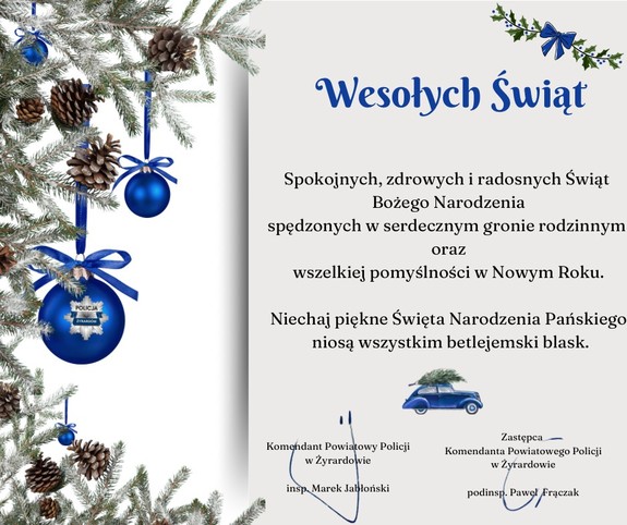 Życzenia Komendanta Wojewódzkiego Policji z siedzibą w Radomiu z okazji Świąt Bożego Narodzenia Data publikacji: 23.12.2025