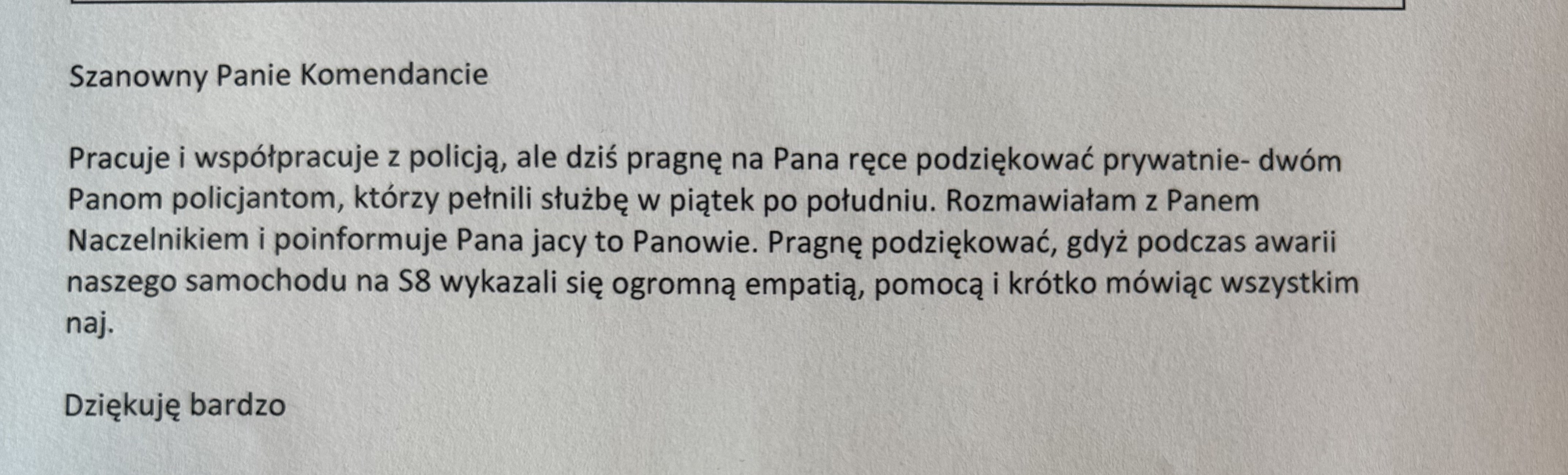 Podziękowanie dla policjantów za empatię i pomoc